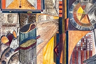 Watercolor and oil pastel on Architectural Building Plan (24"x36")
